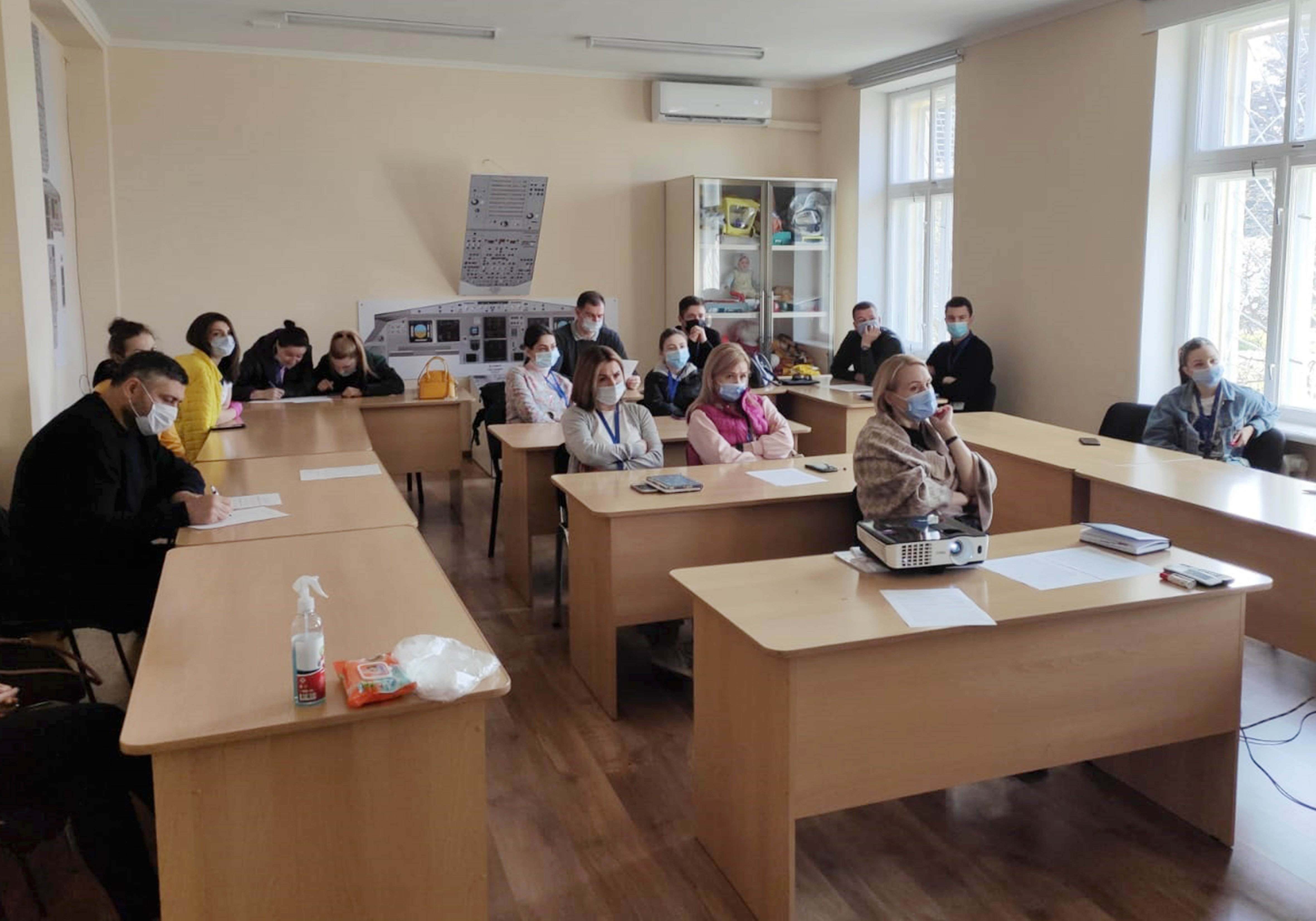 The theoretical and practical training included psychological instruction of the crew members, as well as recommendations and strategies for management of crisis situations on the plane. Officers demonstrated to the participants of the course first aid procedures and assessment methods of victim’s condition.